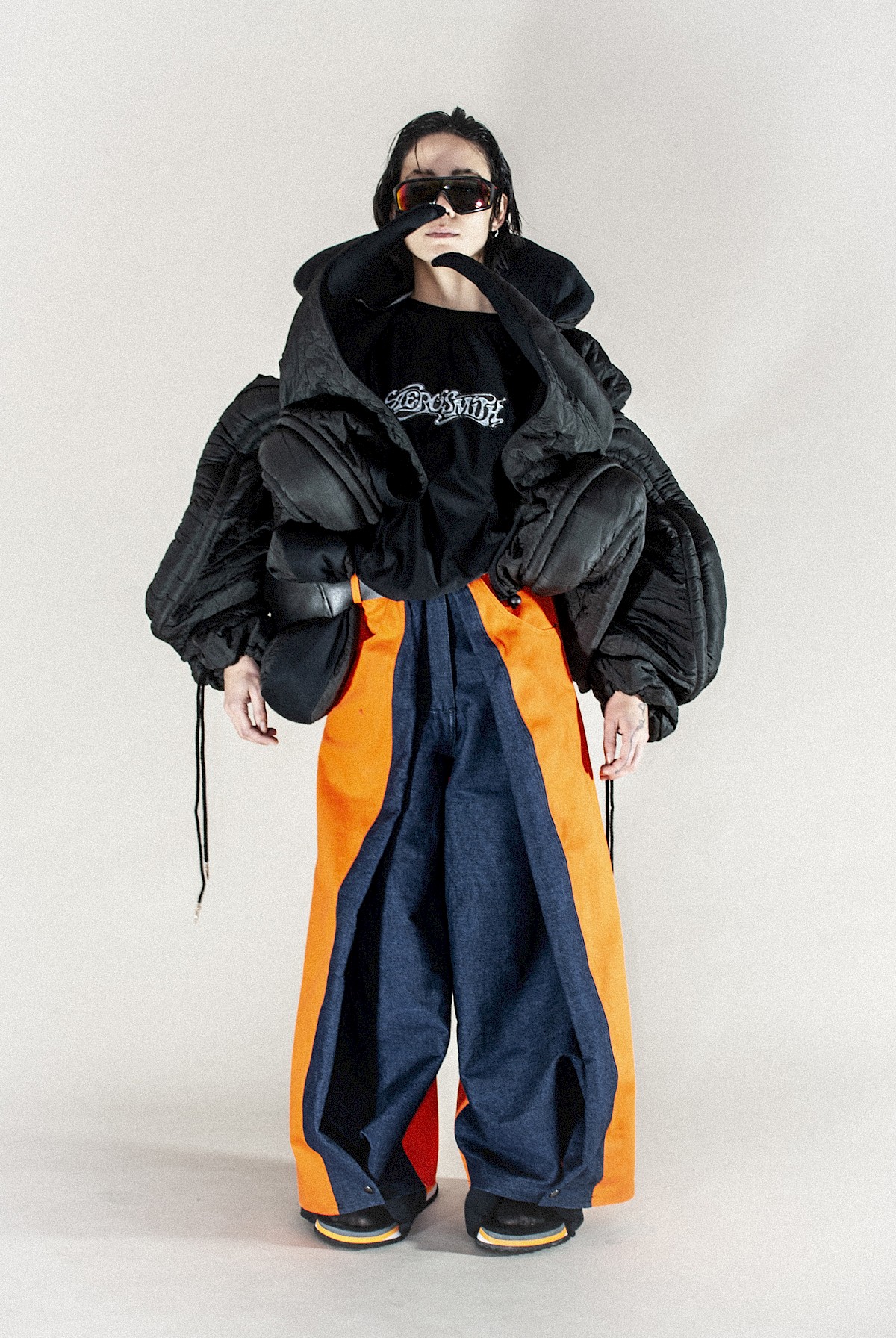 - Démarche autour des archétypes et codes du vêtement, à travers l’hybridation entre le workwear et le flou .